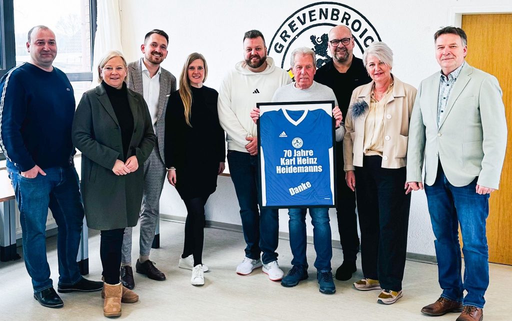 Für 70 Jahre Vereinsmitgliedschaft, unzählige Stunden ehrenamtlichen Einsatzes, für Herzblut, Schweiß und tiefe Loyalität erhielt er aus den Händen von Jürgen Latajka ein eigens gestaltetes Ehren-Trikot sowie einen Gutschein für die traditionelle Vereinsgaststätte „En de Spetz“.